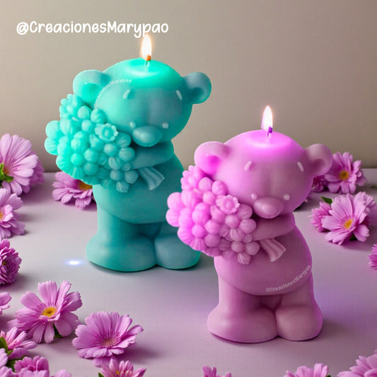 Molde De Silicón Velas Osito Bouquet Rosas y Corazón 10 Cm
