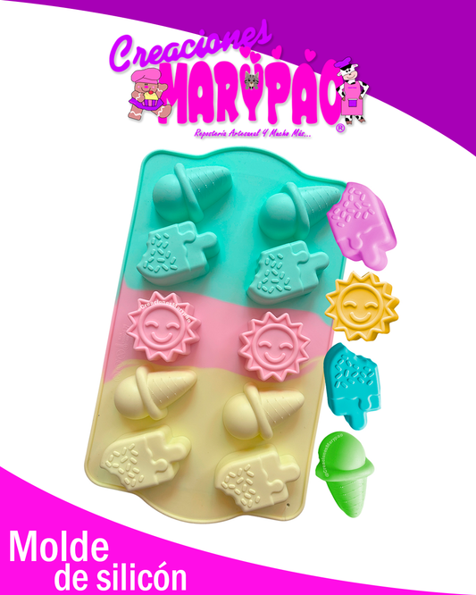 ✨Molde de Silicón Verano Kawaii: Sol, paletas de hielo y helado🍦☀️