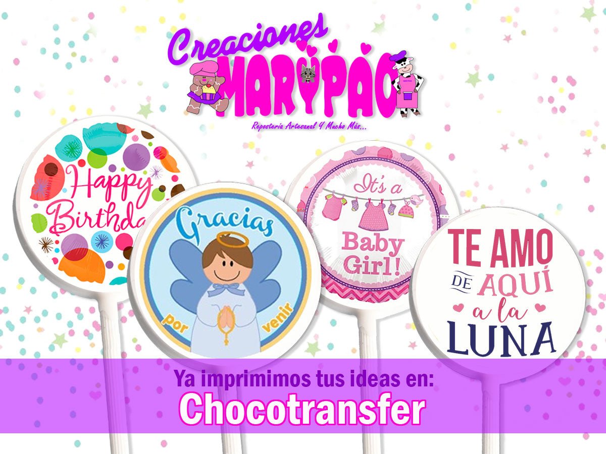 Ya hacemos tus impresiones para chocotransfer, tenemos diseños preestablecidos para baby shower,...