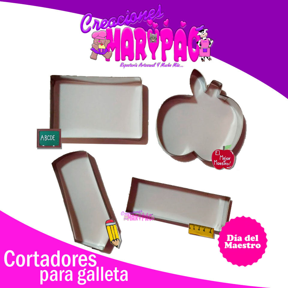 Cortadores de galletas día del maestro y graduación: manzana, lápiz, pizarrón, graduado,...