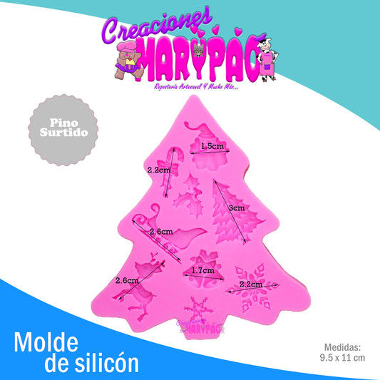 Molde De Silicón Pino Con Pinos Navidad Fondant