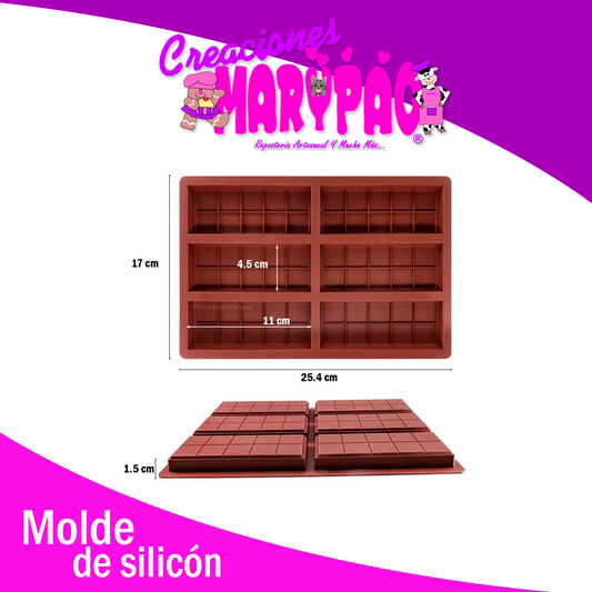 Molde De Silicón Tablillas Chocolate 6 Cavidades