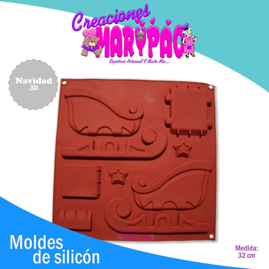 Molde Silicón Navidad 3D Trineo Pino 2 Pzas