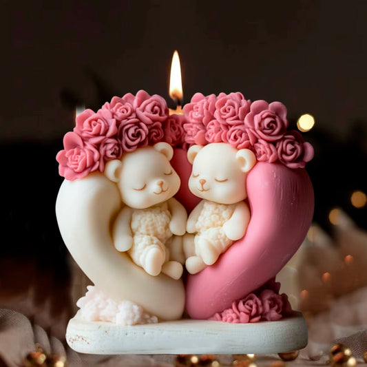 Molde de Silicón – Pareja de Ositos en Corazón con Rosas 🐻❤️🌹