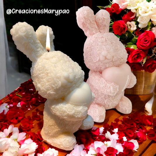 Molde De Silicón Velas Conejito Bouquet Rosas y Corazón 11 Cm
