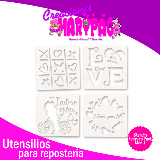Stencils 14 de Febrero San Valentín Plantillas Para Decorar Pasteles Mod.1