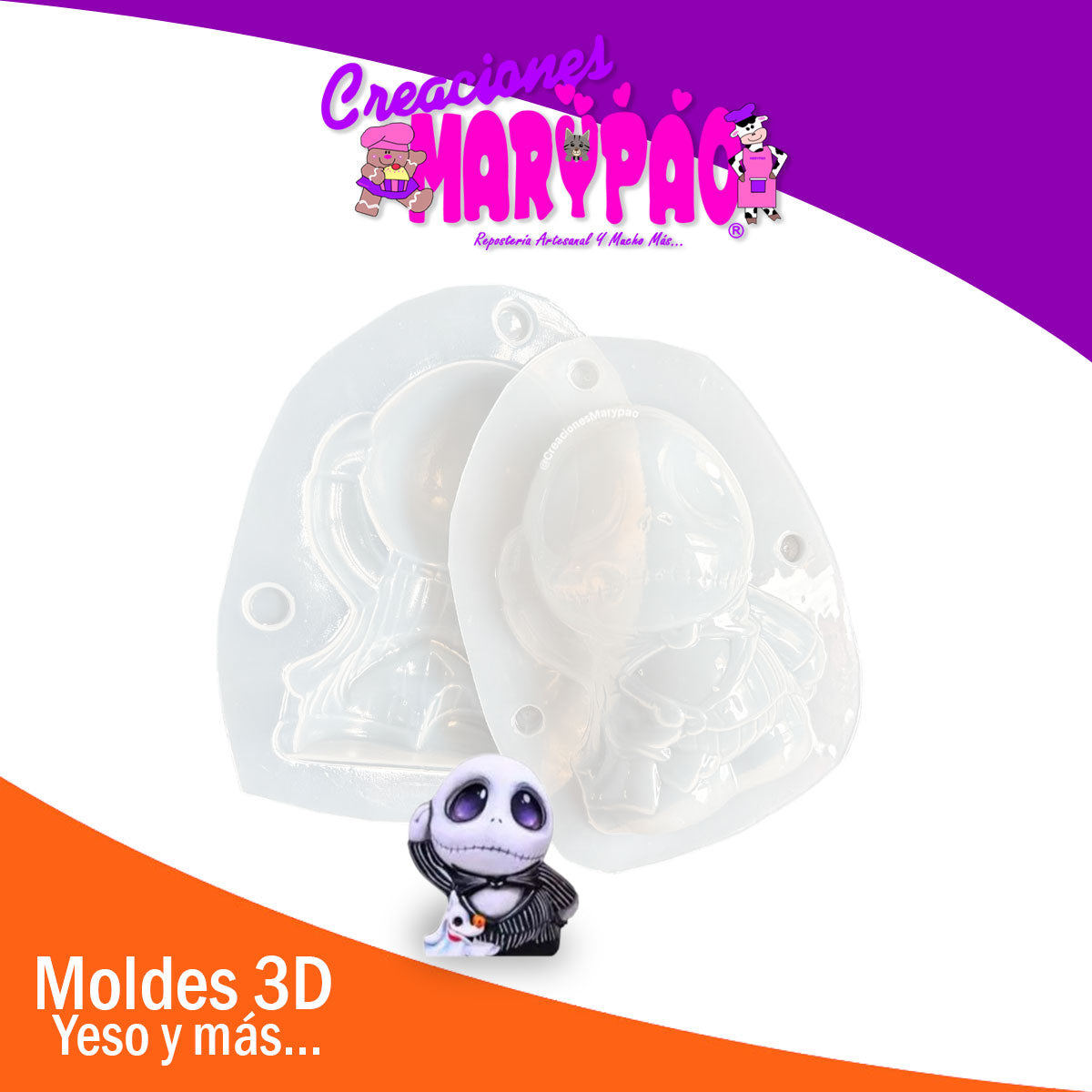 Crea piezas únicas inspiradas en el clásico personaje de Halloween con nuestro molde de polietileno de Jack Skellington. Perfecto para dar vida a alcancías de yeso con un diseño detallado y lleno de estilo.