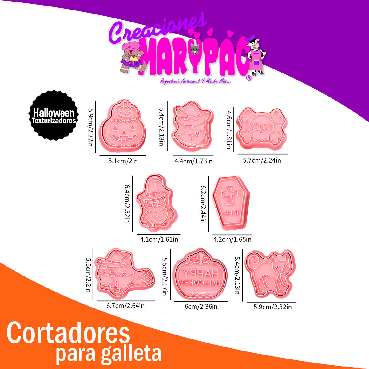 Cortadores De Galletas Halloween Texturizadores Gato 8 Piezas