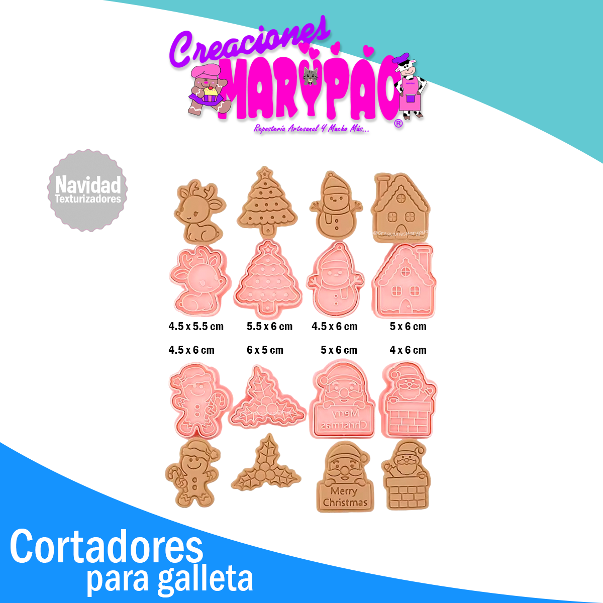 Cortadores De Galletas Navidad Texturizadores 8 Piezas