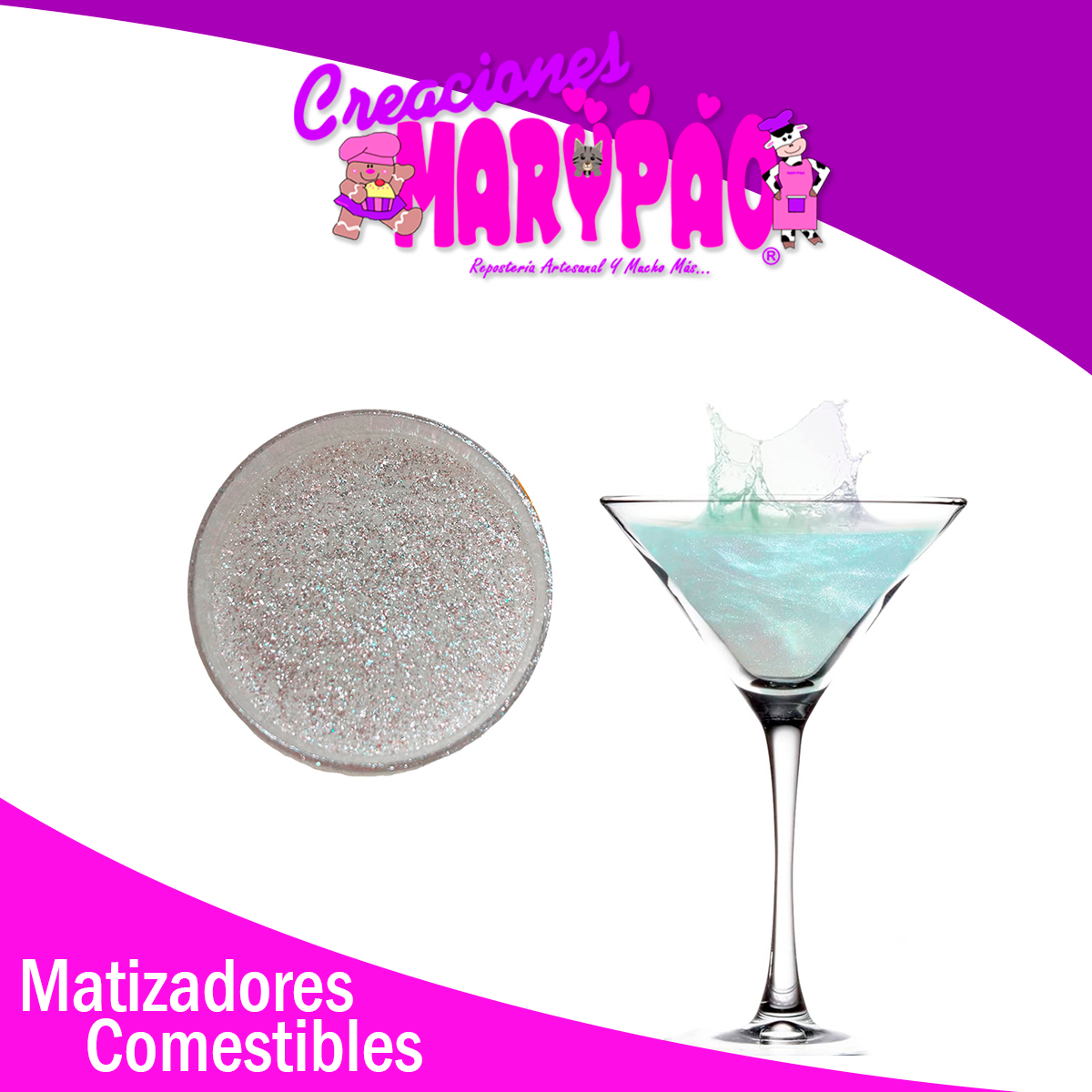 Efecto Glitter Para Bebidas Matizador Comestible Base Plata