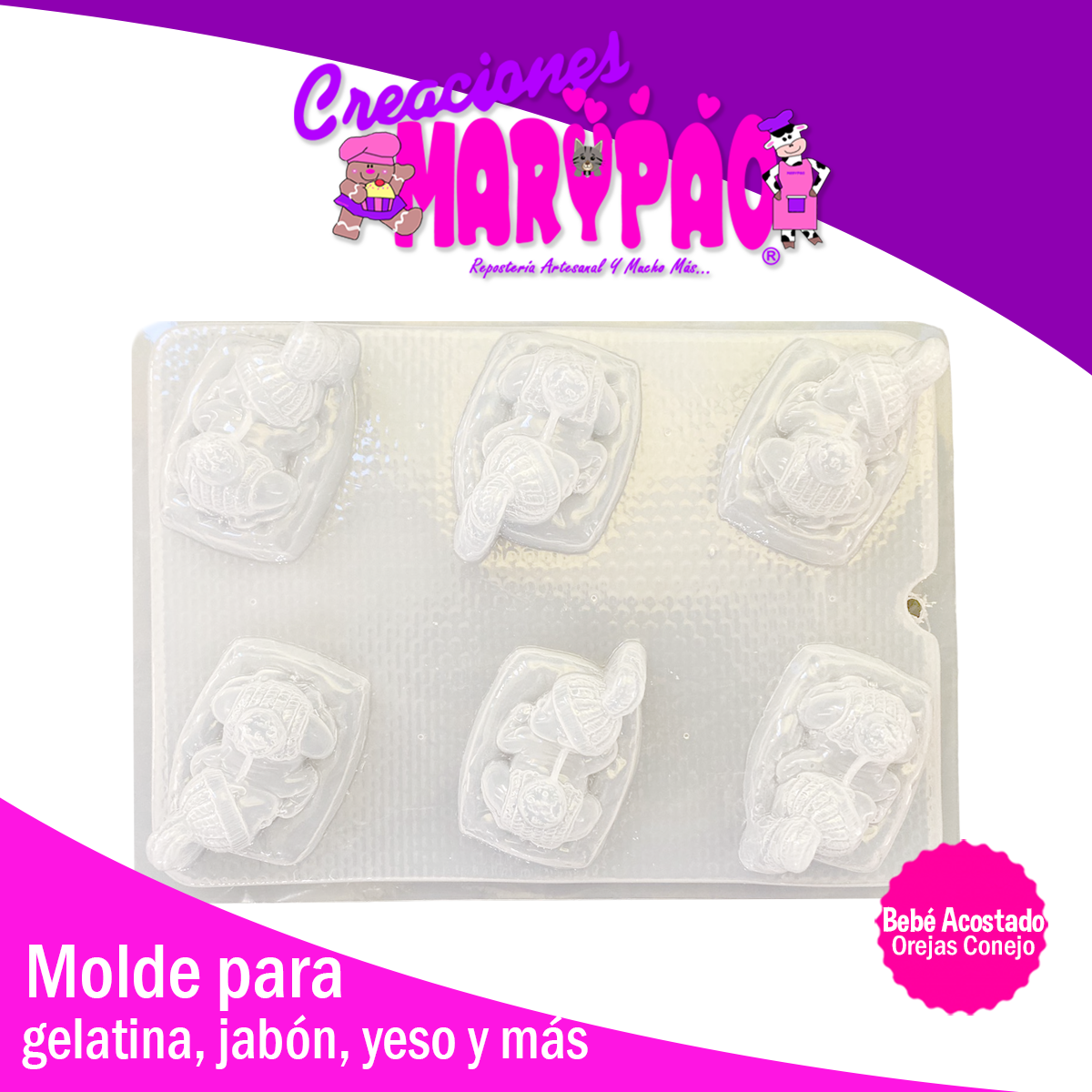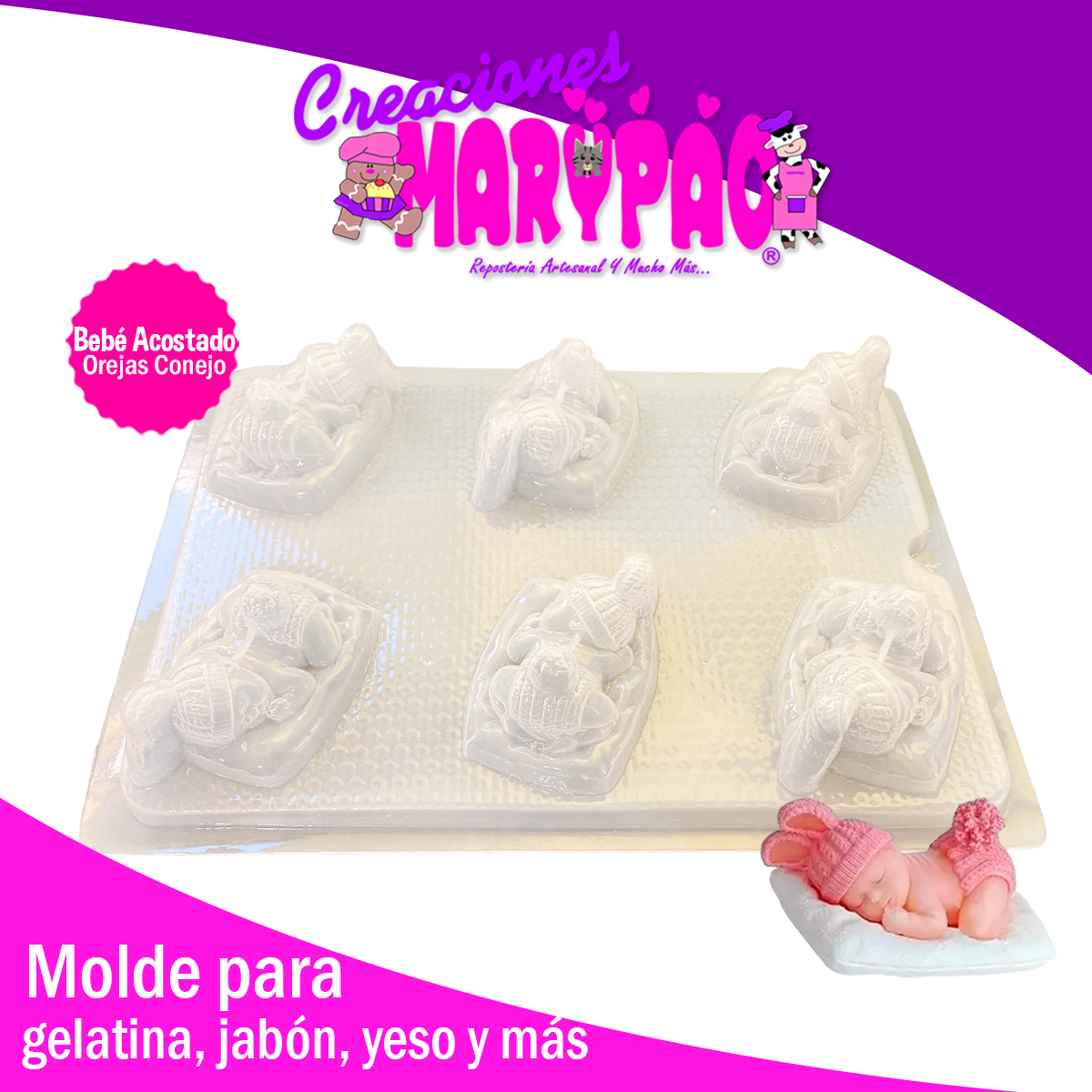 Molde Bebé Acostado Conejo Baby Shower: sorprende a los invitados con creando jabones para tu baby shower. Su tierno e original diseño te permite crear lindas figuras de yeso, gelatina, jabones, velas, resina y más. Además, estos moldes son resistentes y difícilmente se dañan o rompen, permitiéndote disfrutar de crear figuras durante mucho tiempo! ¡Regala alegría y emoción con estos moldes!