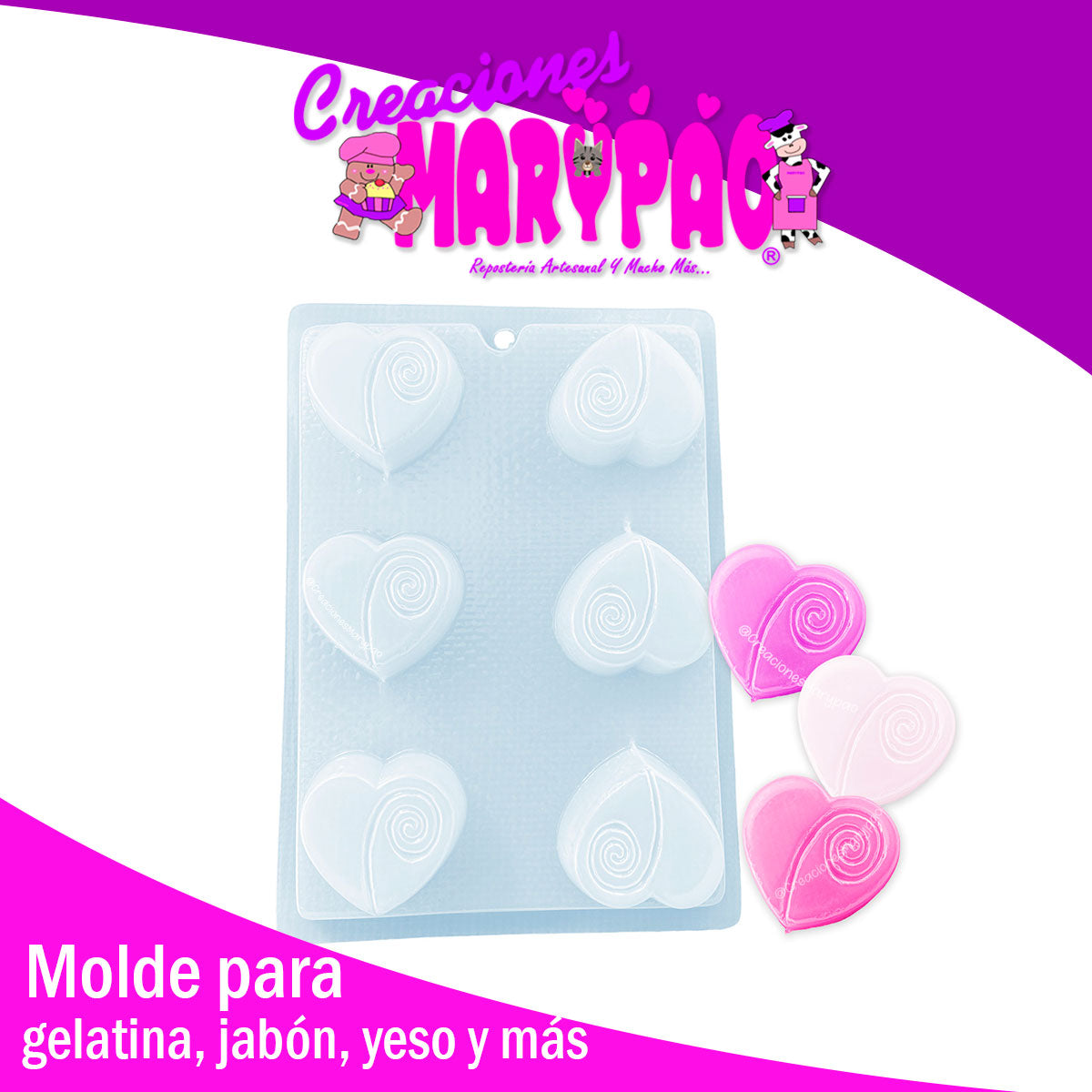 Molde Corazón Con Espiral M1 Febrero Amor Jabón Gomita Gelatina