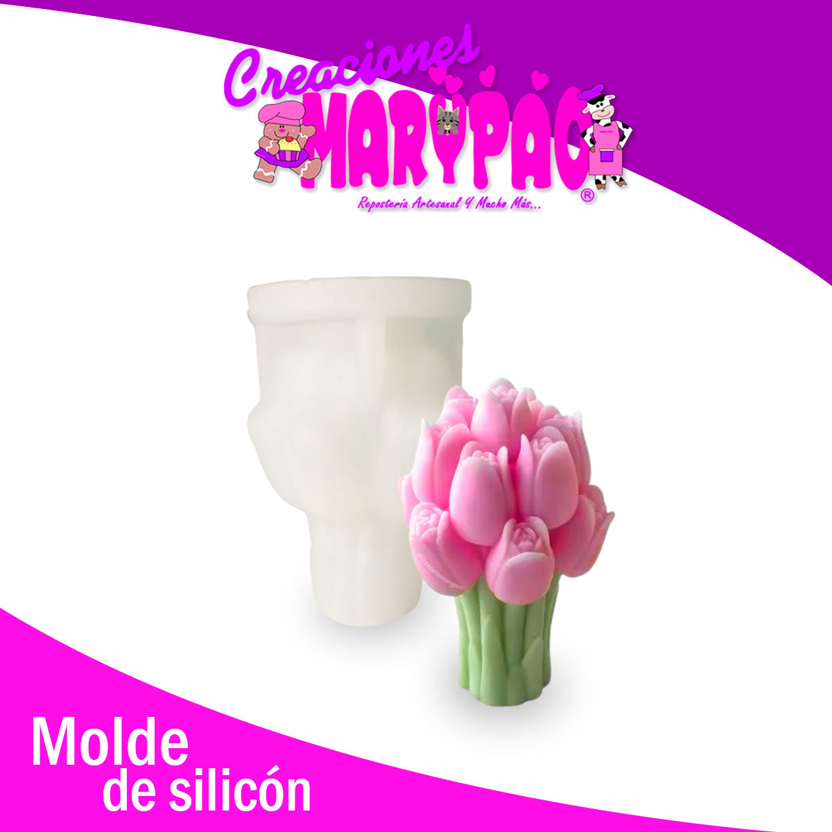 🎀 Molde de Silicón Premium en forma de ramo de tulipanes, ideal para tus velas artesanales o proyectos DIY.