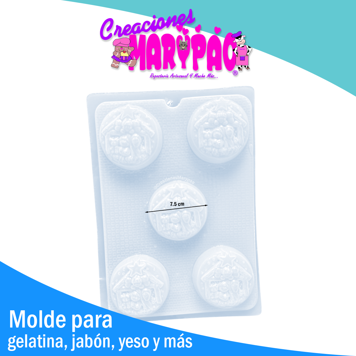 🧩 Cavidades: 5 figuras redondas con diseño de pesebre