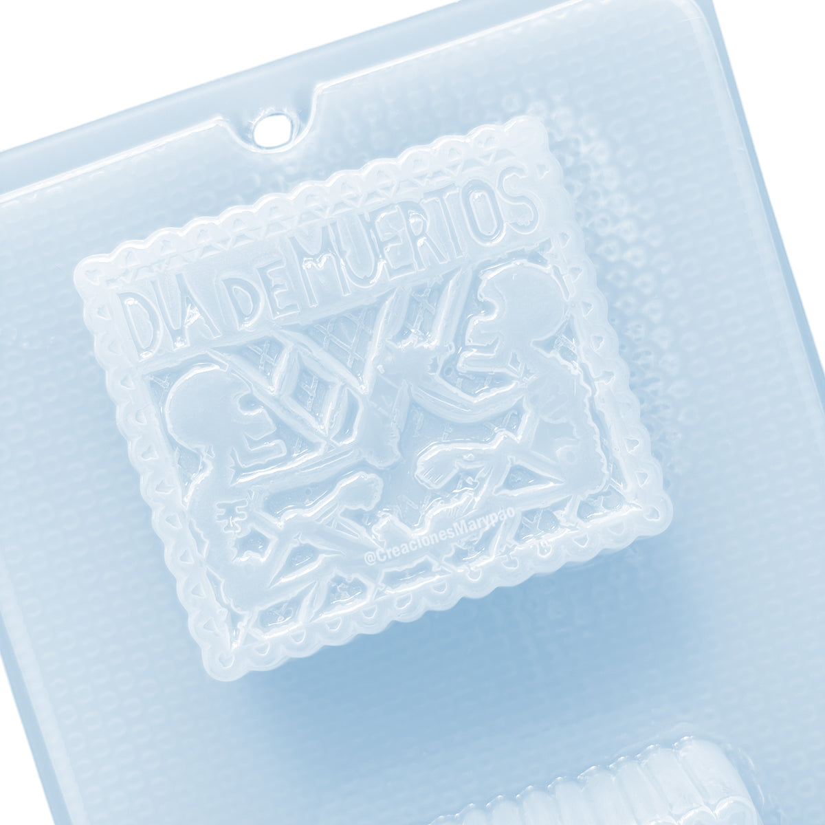 ¡Dale un toque lleno de tradición a tus creaciones con este hermoso molde inspirado en el papel picado de calaveras, ideal para el Día de Muertos!