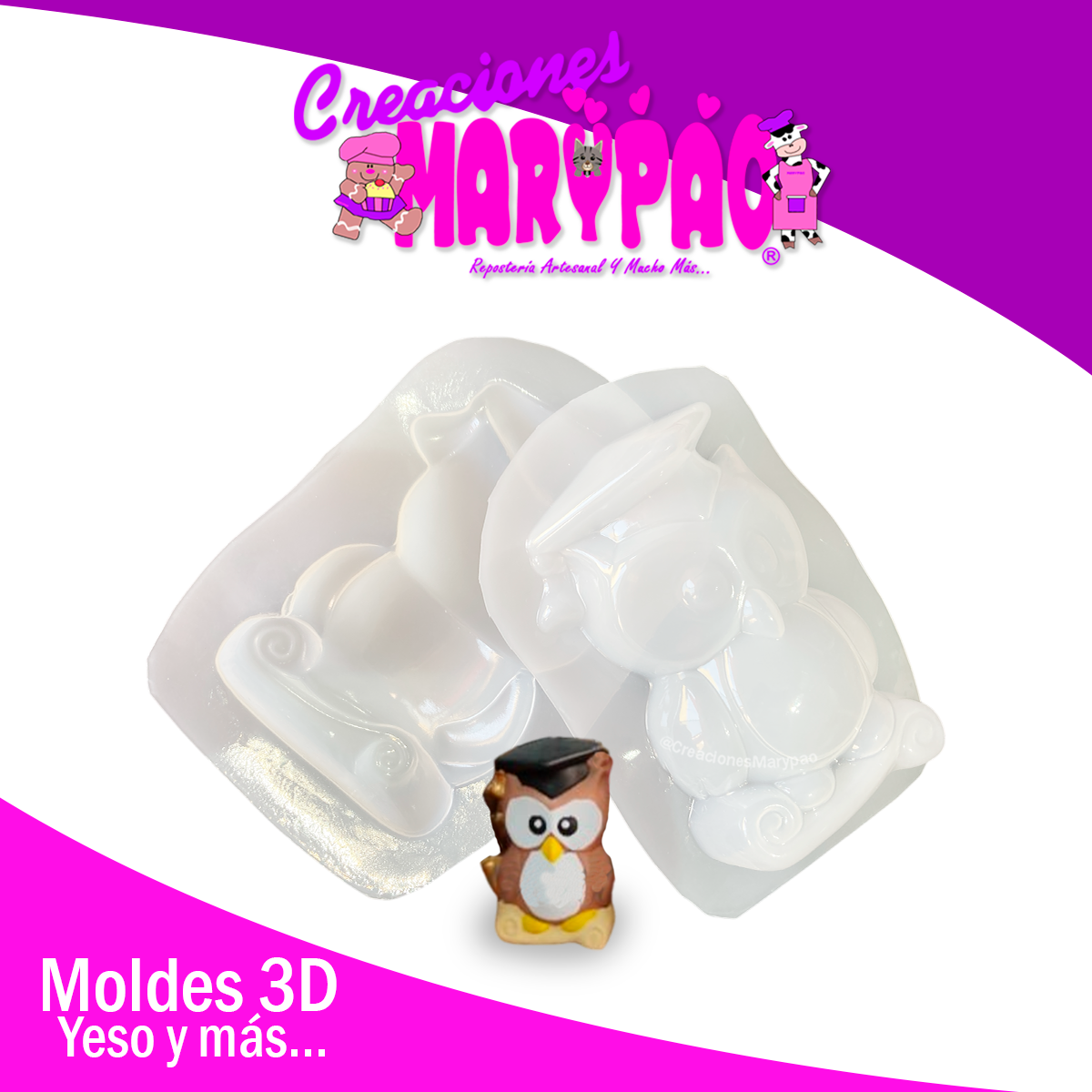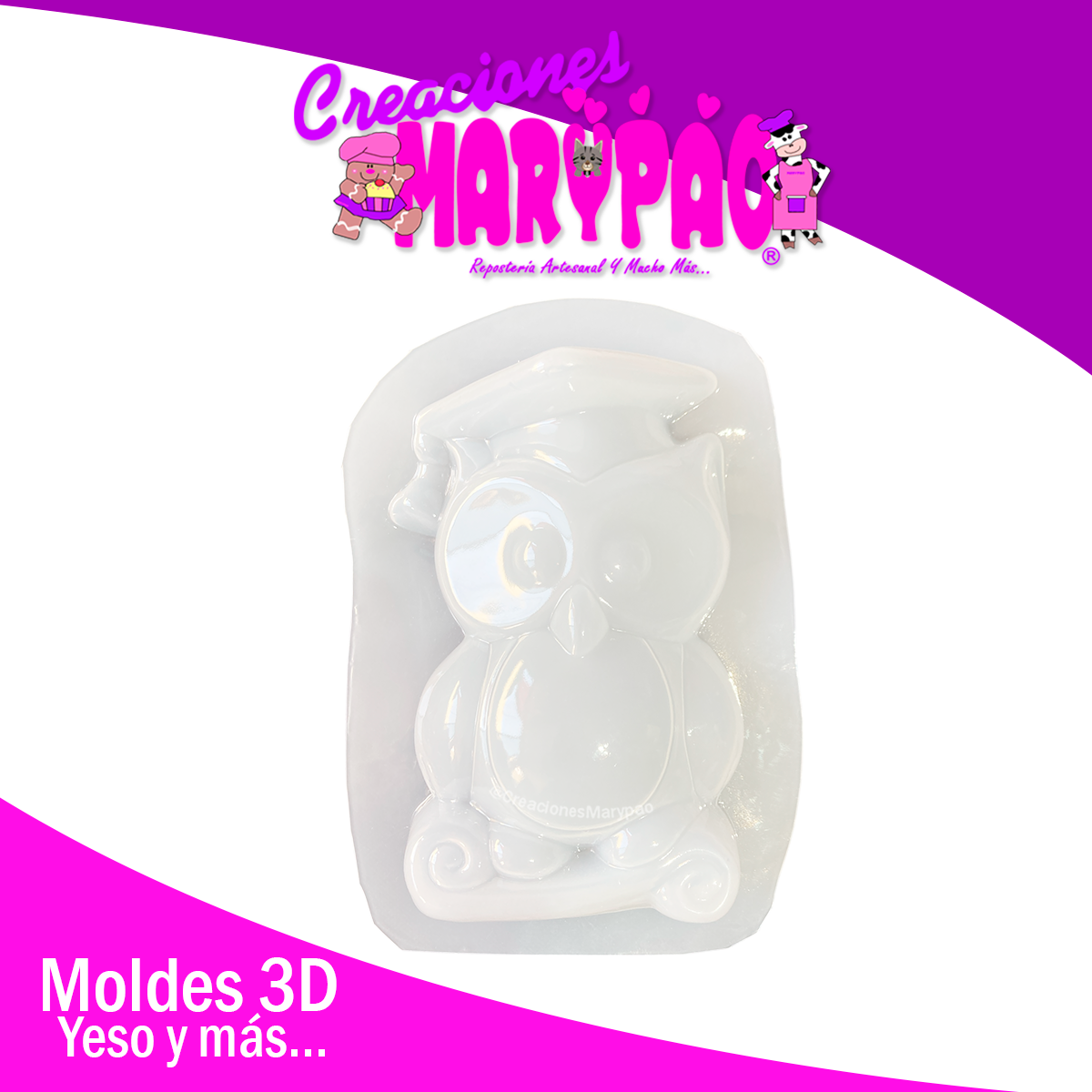 🎓Molde Para Alcancía de Yeso Búho Graduación 16.5 cm🦉