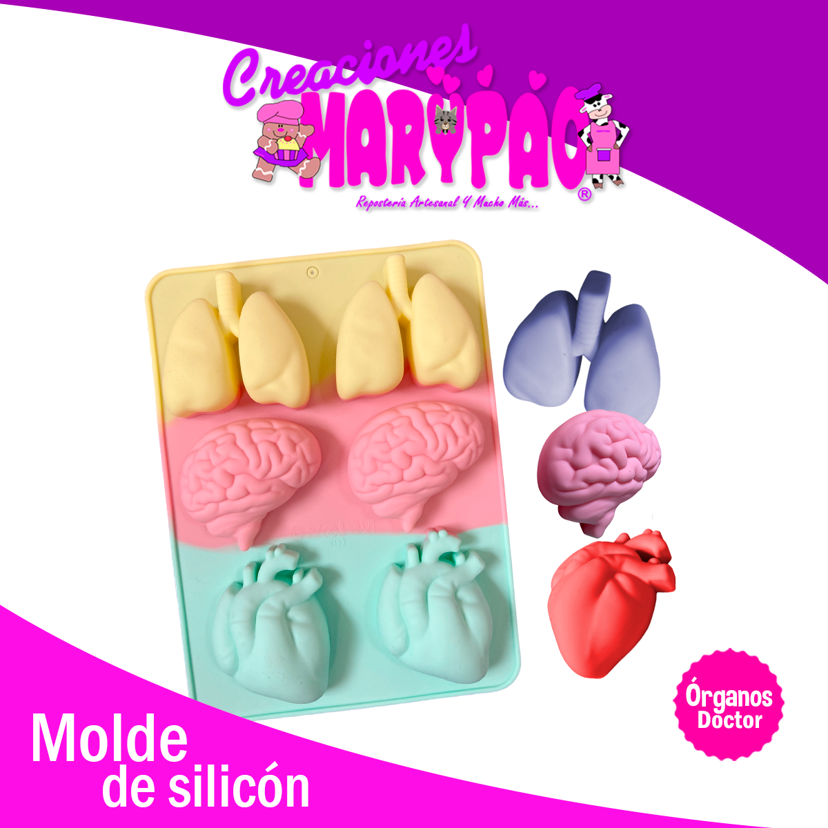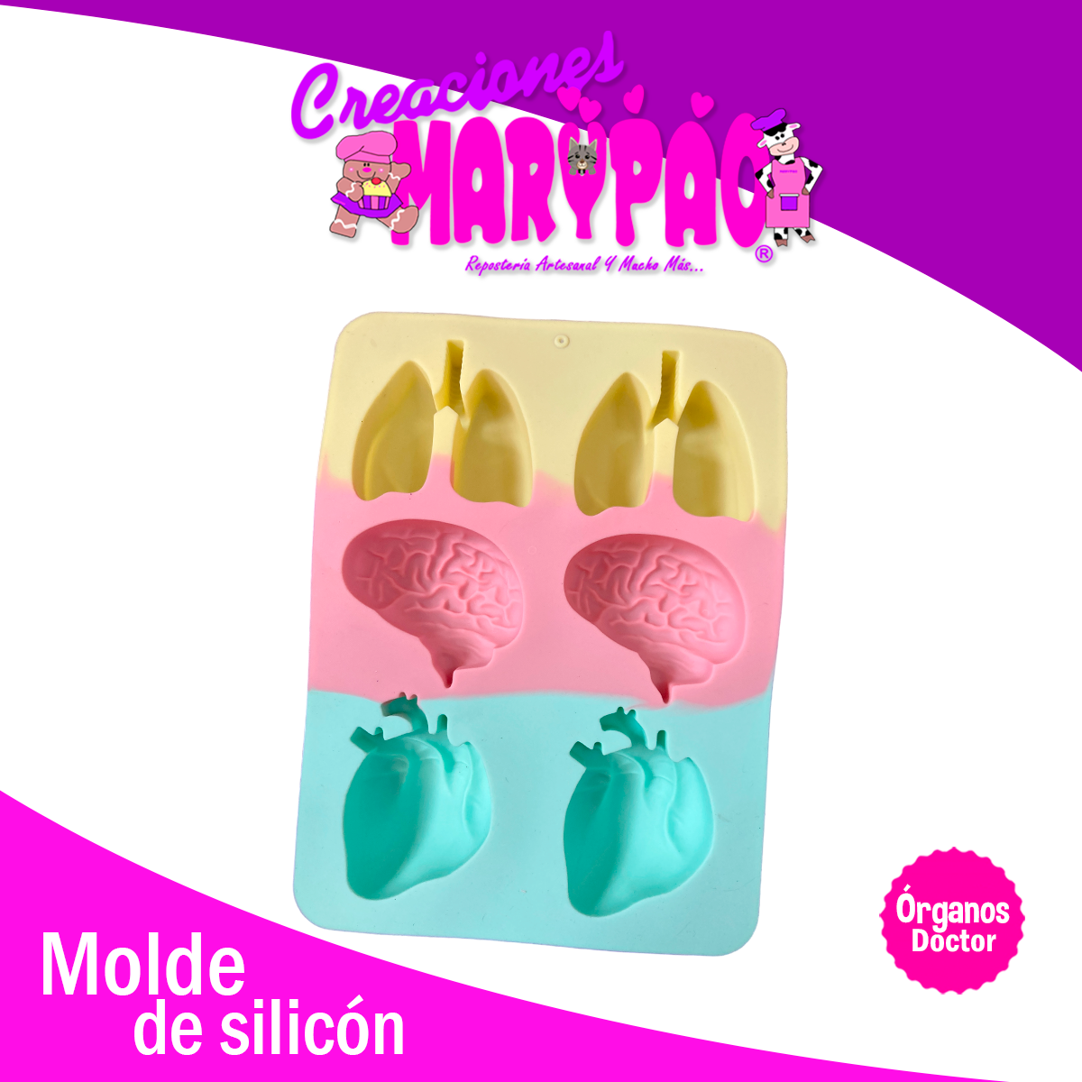 ¡Inspira a tus creaciones con el molde perfecto para doctores! Haz jabones, gelatinas, fondant, yeso o chocolates en forma de órganos casi reales. Este molde de silicón es flexible, fácil de limpiar, antiadherente y resistente a altas y bajas temperaturas. ¡No se dañará ni romperá, asegurando una larga vida útil!