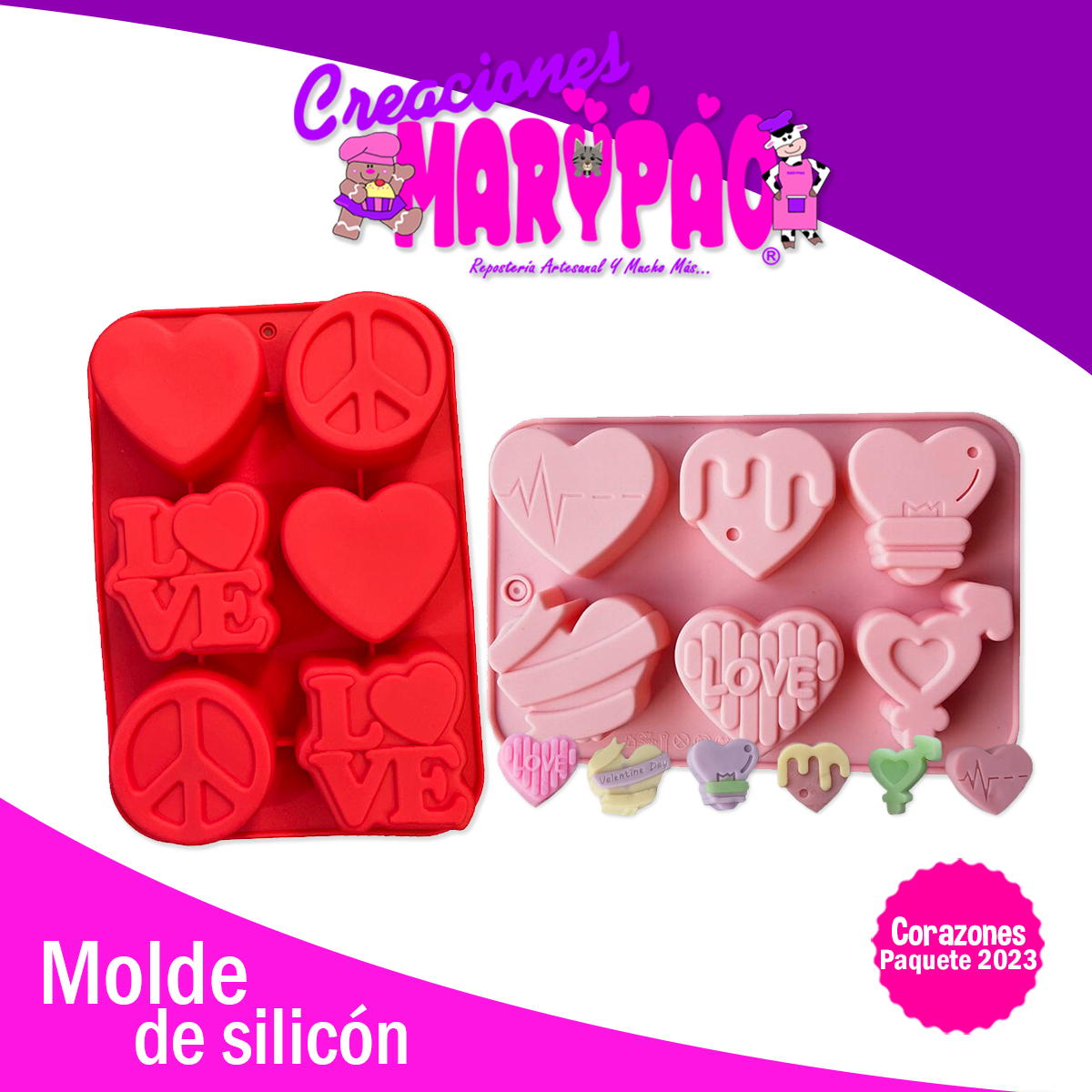 Paquete Promoción Molde De Silicón Corazones Febrero