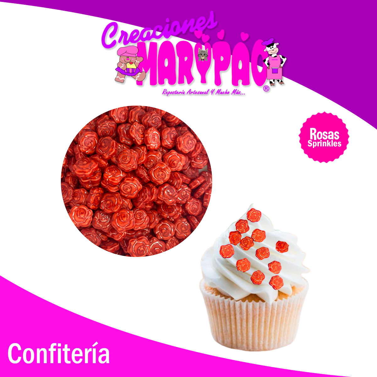 Descubre los Sprinkles de Repostería de la marca Creaciones Marypao, perfectos para decorar tus pasteles y cupcakes con estilo. Con varios diseños disponibles en una práctica y rendidora presentación de 120g, podrás darle un toque único a tus creaciones dulces.