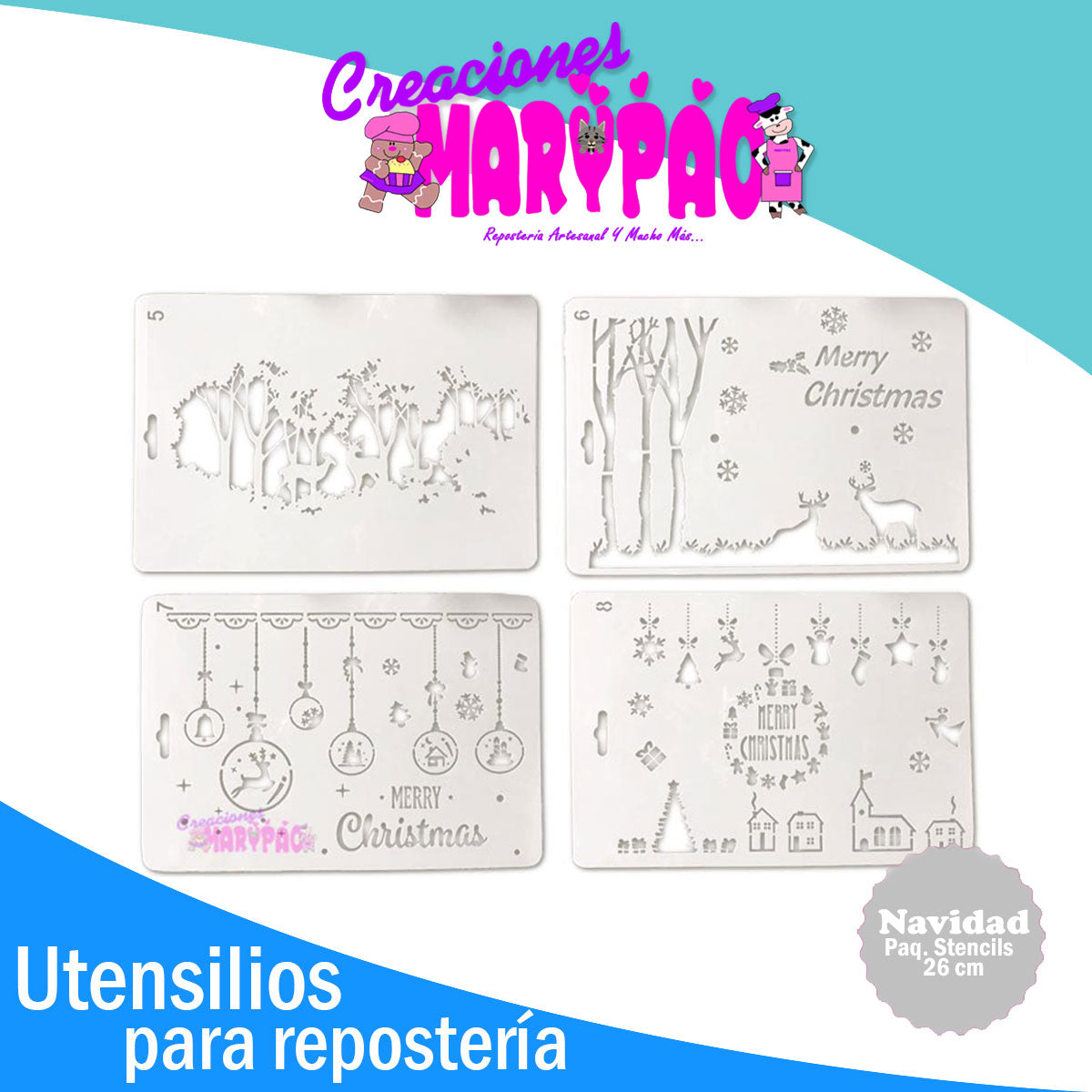Stencils Navidad Árbol Renos Esferas Regalos Paquete 4 Piezas 26 cm