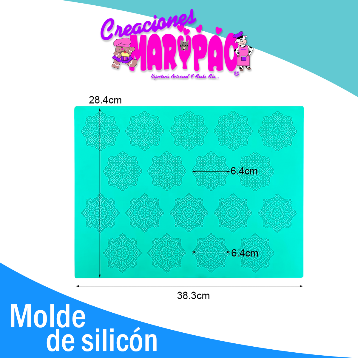 Transforma tus creaciones navideñas con el Tapete de Silicona Copos de Nieve de Creaciones Marypao. Este molde, con un diámetro de 6 cm y una altura de 0.5 cm, es ideal para dar forma a deliciosos detalles en fondant o encaje de azúcar, perfectos para decorar tus postres en estas festividades. Su diseño en forma de copos de nieve añade un toque festivo y elegante a cualquier mesa.